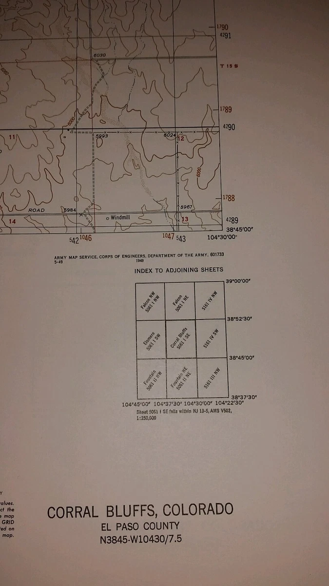 1940’s Army (like USGS) map Corral Bluffs Colorado Sheet 5061 I SE