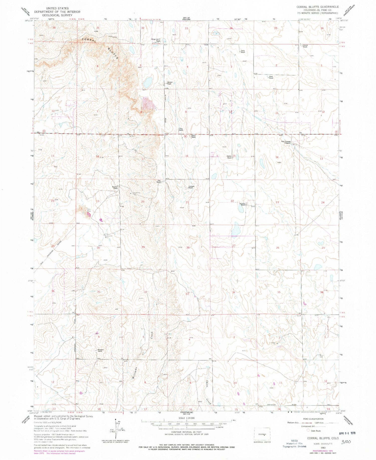 USGS TOPO Map Colorado CO Corral Bluffs 232638 1961 24000