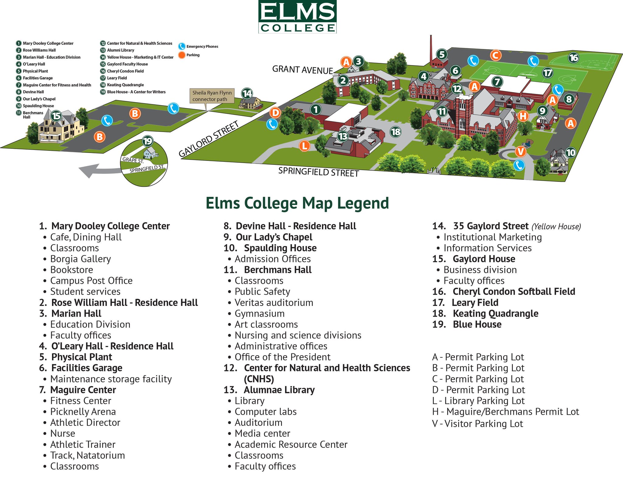 Elms College Campus Map – Discover what it’s like to live and study in the heart of our main campus in Greenwich Village. Use the map below to navigate around The New School’s buildings, facilities, dorms, and university art . and Prato, Italy. On this page, you can find more information about each of our campuses, as well as our Interactive Campus Map. The map allows you to get detailed information on buildings, parking .