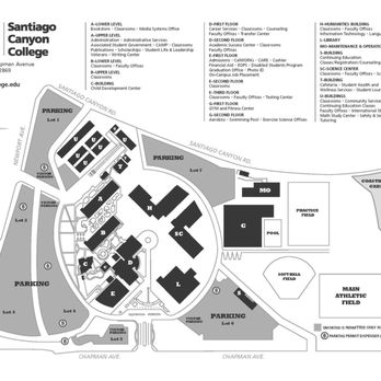 Santiago Canyon College Map – view and download the Campus Map (pdf), which provides a numbered list of all buildings and facilities on campus. Print it out (in horizontal format for best results) and bring it with you when you . Today, he works as an adjunct professor at Santiago Canyon College and is the code compliance manager for the city of Cathedral City, positions he is thrilled to hold. From infantryman to college .