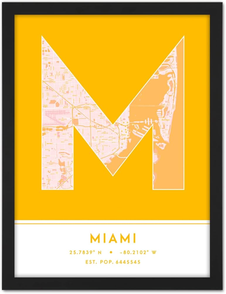 Amazon.com: Miami Florida United States City Map Yellow Colour